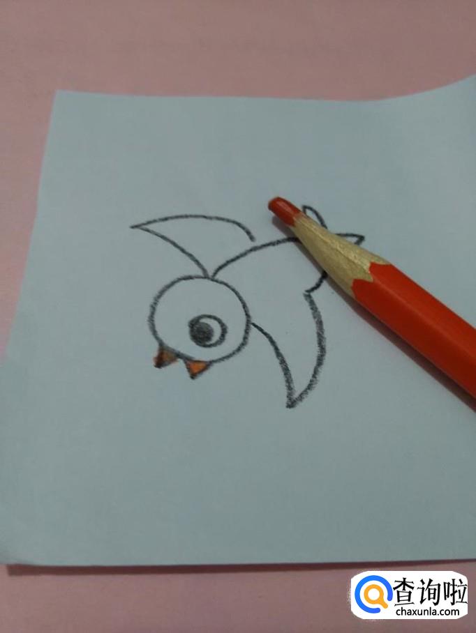 在头的左下方,画两个三角形,表示小鸟的嘴。
