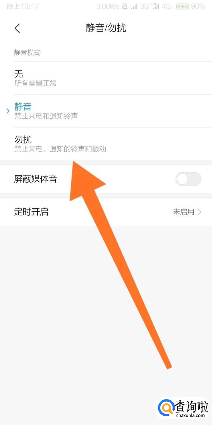 接着点击“勿扰”选项即可把手机设置为勿扰模式。