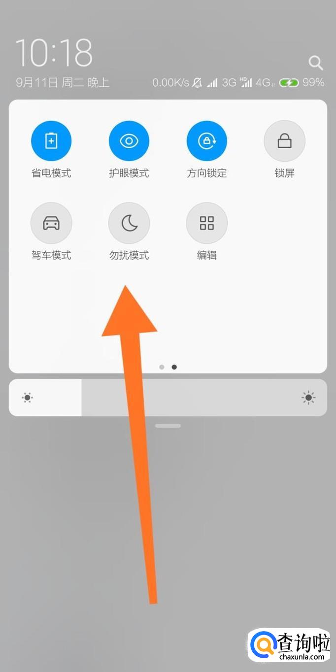 还可以直接下拉手机通知栏,点击“勿扰”模式开关按钮,使手机快速进入勿扰模式。