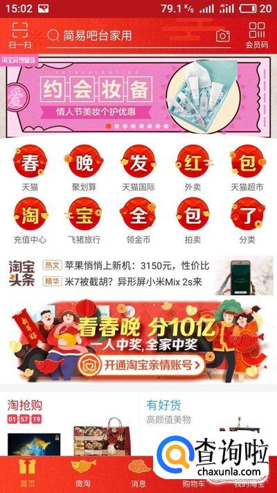 打开手机找到手机淘宝,点击手机淘宝进入淘宝首页。