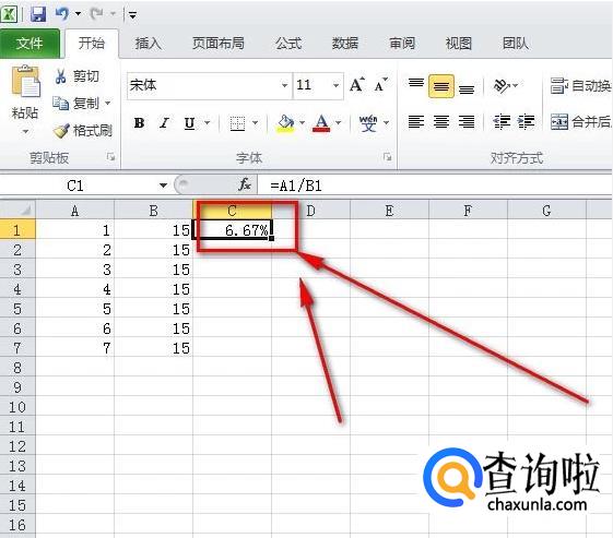 之后,按下回车键,就可以得到两列数据的百分比情况了,此时这个数据还是小数点模式。