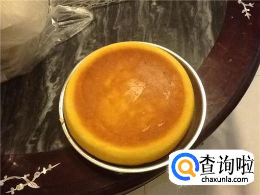最后只要等待十几分钟,就可以将电饭煲倒扣倒出海绵蛋糕在盘子上,简单的海绵蛋糕就制作完成了。