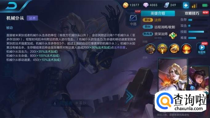 要说这个英雄怎么来操作,首先就不得不出她的被动,她的被动是她输出的根本来源,可以说没有了任何伤害,和一个超级兵无异,被她直接杀死的敌方生物都会变成自己的机械傀儡(敌兵,敌方英雄,野怪,河道生物和龙都可以),扑向敌方造成物理伤害,速度,伤害,血量都随米莱狄法强增加,超过5个机械傀儡同时存在之前的机械傀儡会爆炸,对周围敌人造成法术伤害和减速。