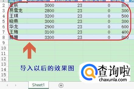 在导入数据的时候,我们只需选择“表”以及确定导入的位置即可,其他的无需做任何改动,下图二就是我们将工资表导入以后的效果图;