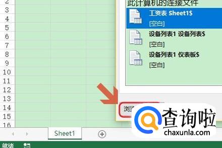 我们点击对话框左下角的“浏览更多”,然后在桌面上将刚才两个表格中的任意一个添加进来;