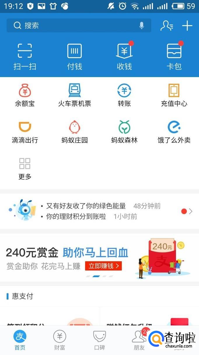 打开支付宝,我们可以看到界面如下图所示。