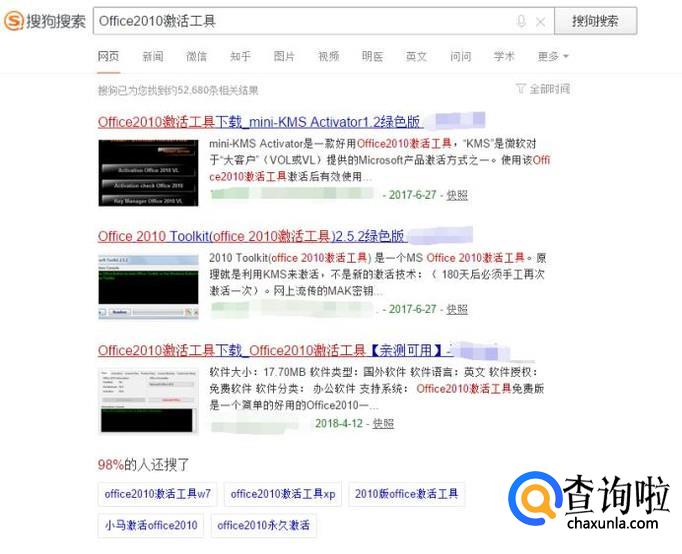 首先用搜狗搜索office2010激活工具并且选择下载