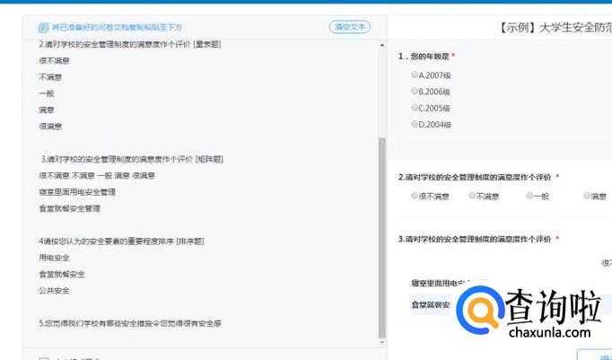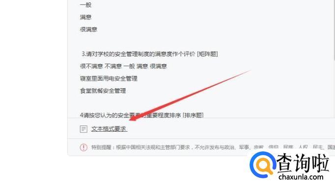 关于格式要求,我们可以参考左下角的“文本格式要求”,这里有完整的导入问卷的格式要求,一般在文档上编辑好后,就可以直接复制粘贴过来。