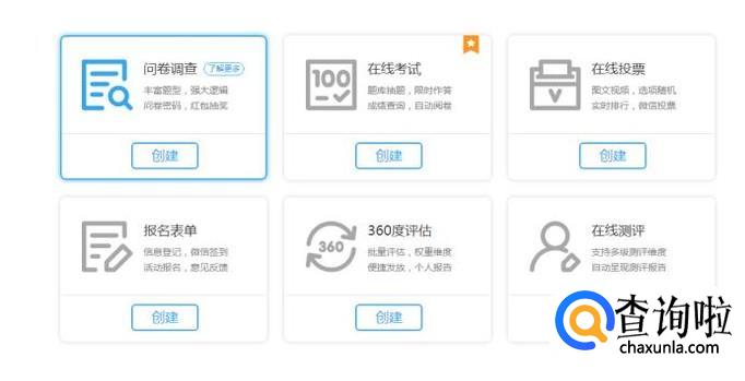 可以新建的问卷类型很多,有在线问卷、投票、报名表单、在线评估等等,这些都是我们平常工作中非常有用的东西。我们点击“调查问卷”选项进入调查问卷的编辑页面。