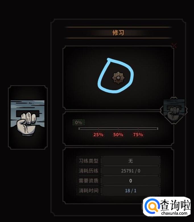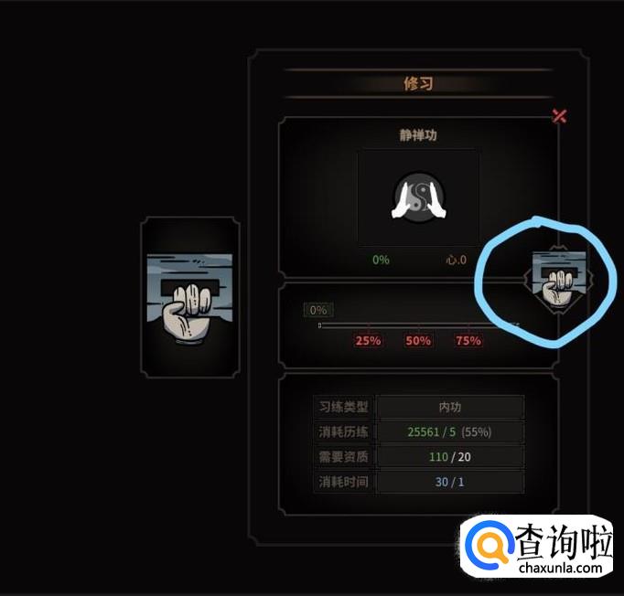 选择好之后可以一直点击圈中的手的图标,每点击一下就表示修习一次