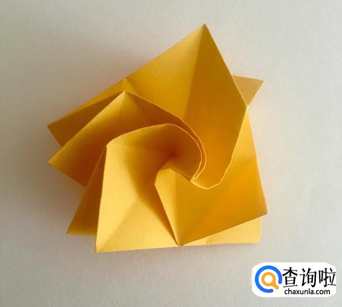整理好形状,用笔将花瓣向下卷,一朵漂亮的蔷薇花就折好了。