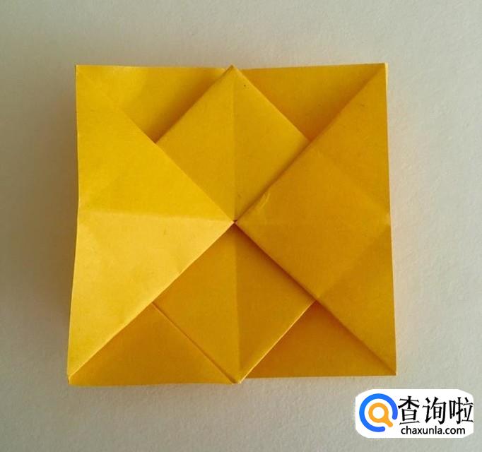 另一面用相同的方法折叠,再把顶部的角向下折。