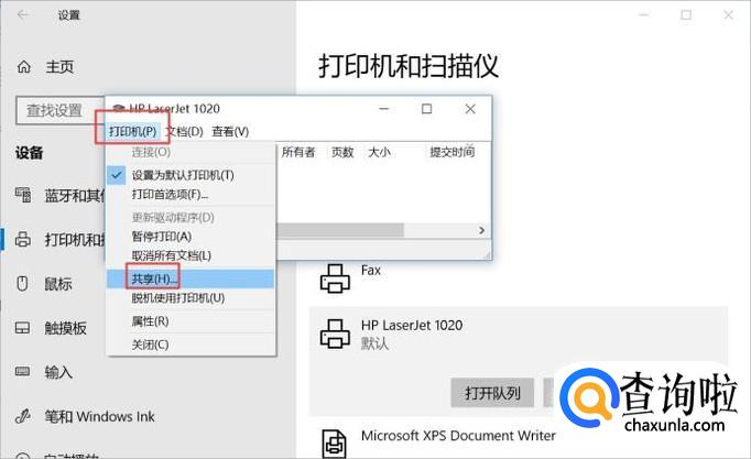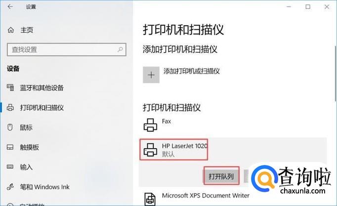 之后我们点击连接的打印机,弹出的界面,我们点击打印队列;