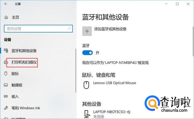 然后我们点击打印机和扫描仪;