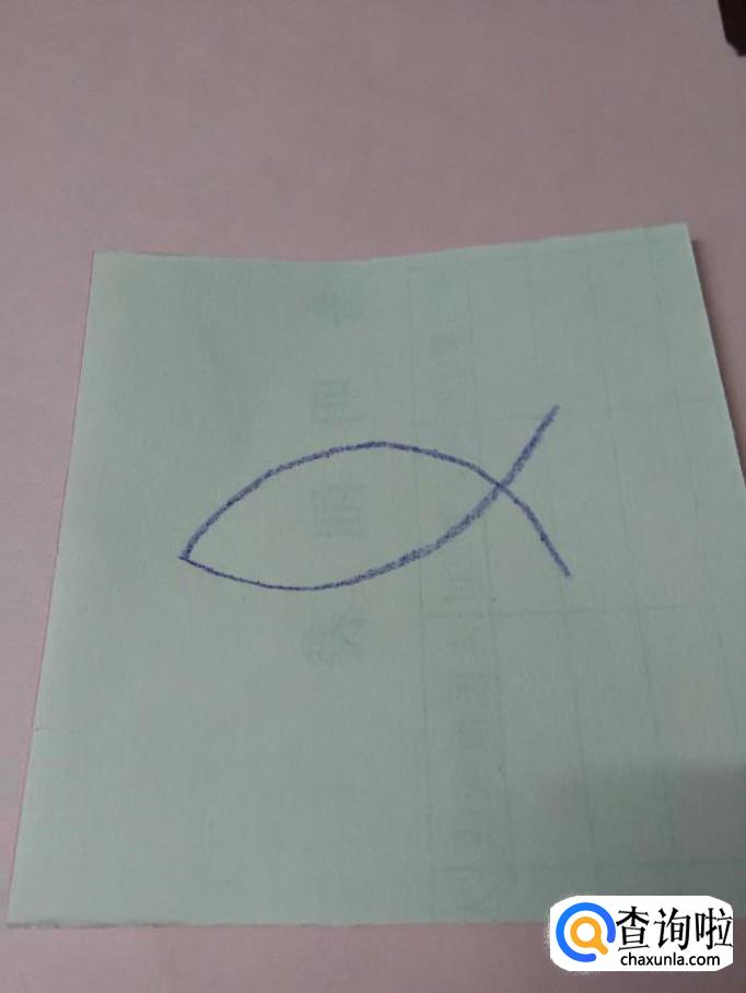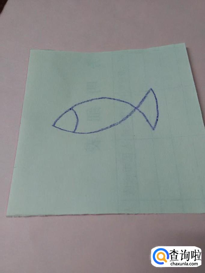 先画两条相交的弧线,表示小鱼的轮廓。