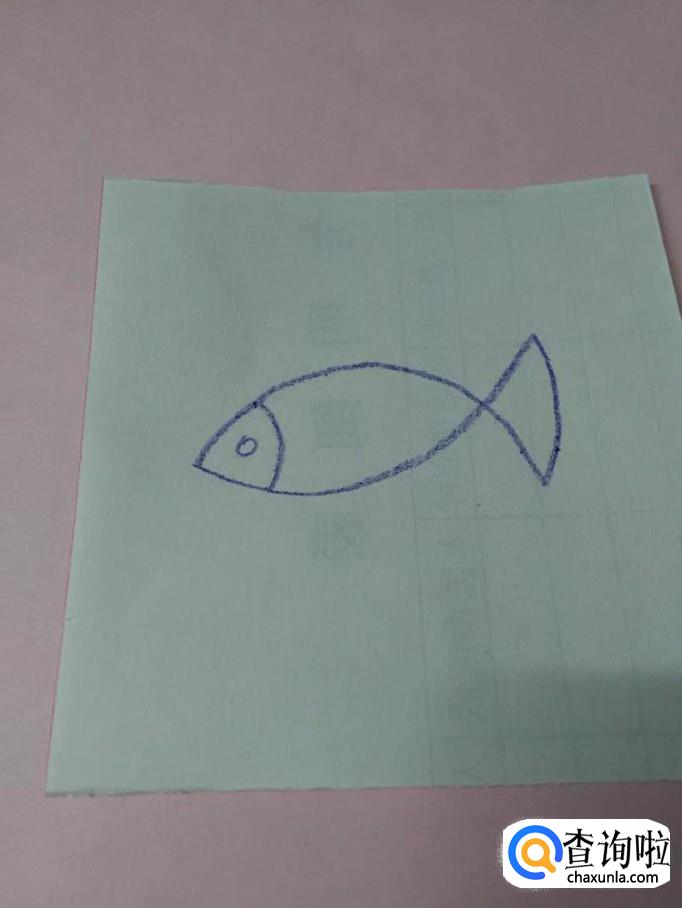 在小鱼右侧,画一条弧线,表示小鱼的尾巴。