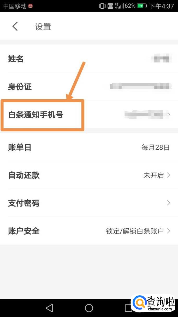打开设置后,会有一个选项是白条通知手机号码,如下图。