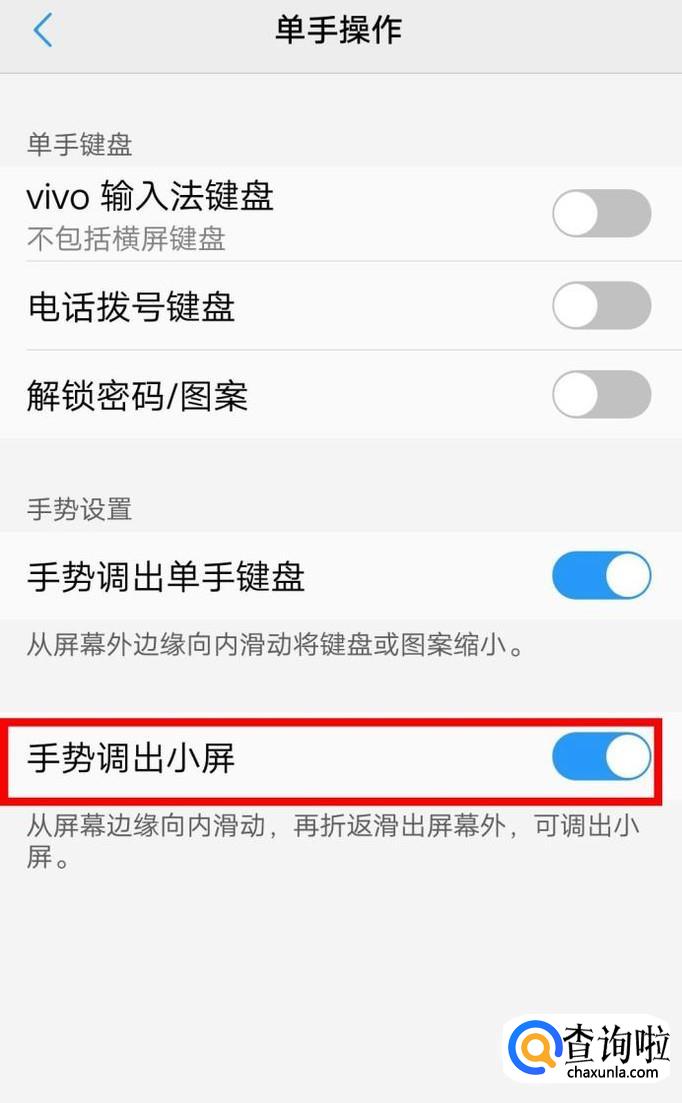 在这勾选手势调出小屏,如下图。