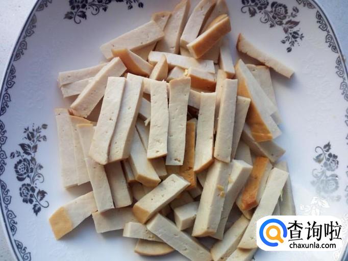 素鸡稍用水冲洗一下,控干水分,切成条。