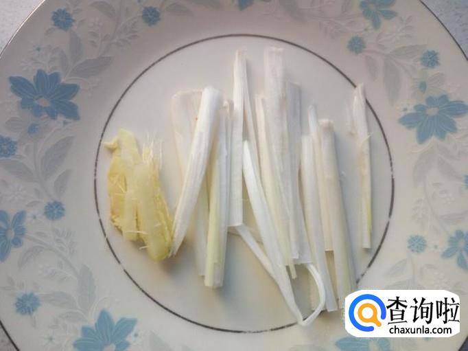 葱,姜,切成丝,备用。