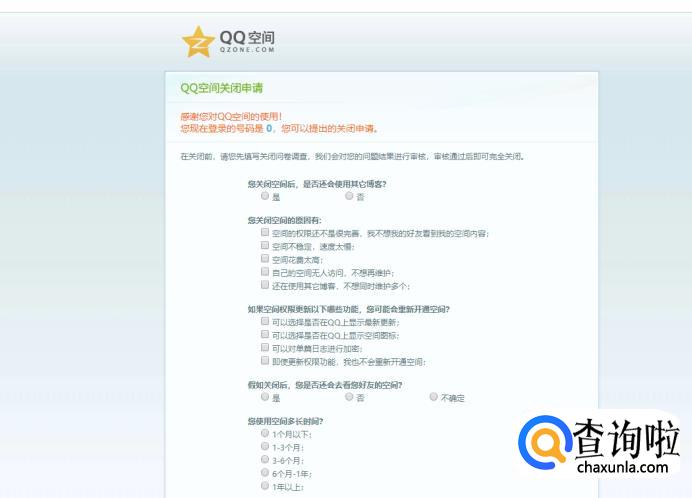 输入“QQ空间关闭申请”网址:http://imgcache.qq.com/qzone/web/qzone_submit_close.html。