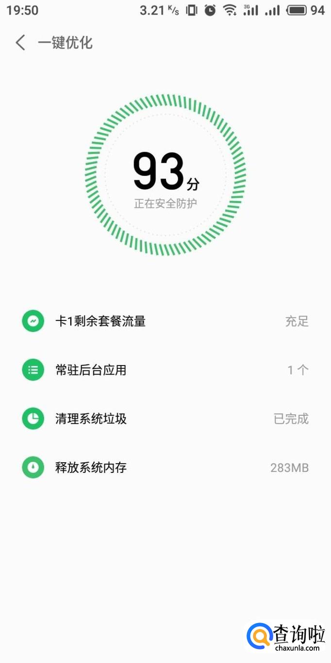 进入一键优化界面,系统会对手机进行快速一键优化,完成初步的清理,恢复运行速度。