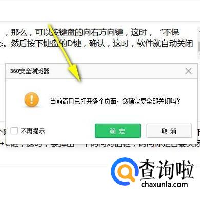 比如,现在打开了多个网页,鼠标又坏了,怎么关闭所有窗口呢?我们可以按下键盘的ALT键+空格键+C键;这时,会弹出一个询问对话框,询问你是否要关闭所有的窗口。如果确定是关闭所有窗口,那么,按下键盘的回车键即可。