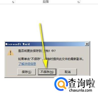 如果不想保存,那么,按下键盘的向右方向键,选中“不保存”;再按下回车键确认关闭了当前这个文档,WORD软件还在的,我们可以按下CTRL+N,再新建一个空白文档。