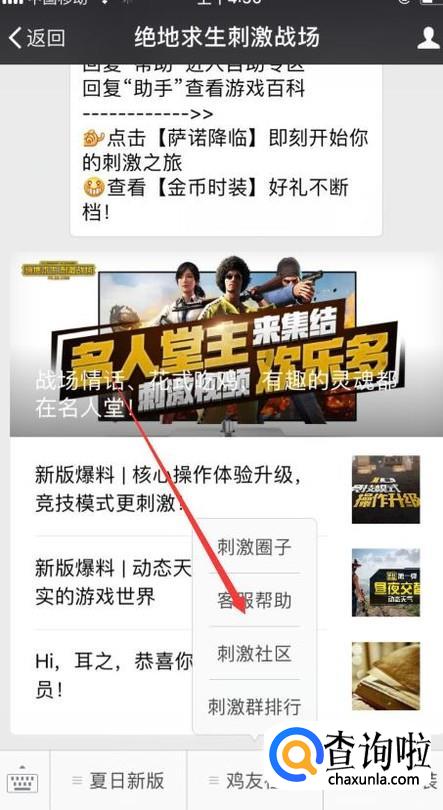 登录到微信公众号之后,找到鸡友社区的客服帮助,然后点击进入,如下图