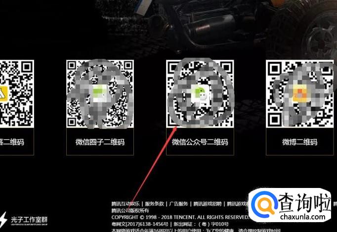 然后在网站的最下面找到腾讯刺激战场的微信公众号,用手机微信扫描,然后点击进入,如下图。