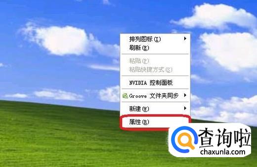 再来讲讲XP桌面,右键点击,选择“属性”。