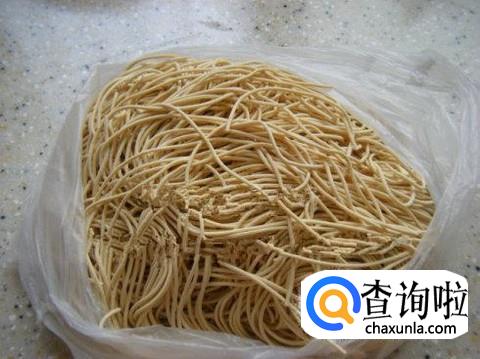 把面粉放盆里,加水和成光滑的面团,饧上20分钟,再用压面机压成较细的面条。