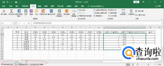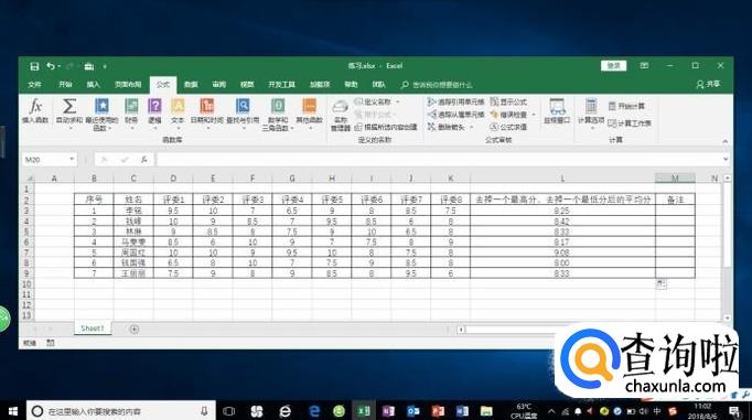 excel表格中使用公式和函数计算最后评分
