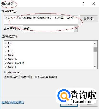 弹出"插入函数"对话框,如图所示。点击"搜索函数或选择类别"右侧向下箭头,下步将进行使用公式和函数计算最后评分的操作。