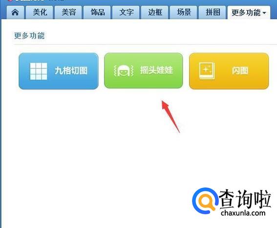 打开图片之后在菜单那里找到更多功能选项,点击该选项在其内找到摇头娃娃选项,如图所示: