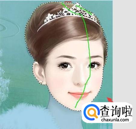 点击摇头娃娃选项在弹出的对话框内选择自动抠图选项,然后在人物的头部上画出红线和绿线得到人物的选区,如图所示: