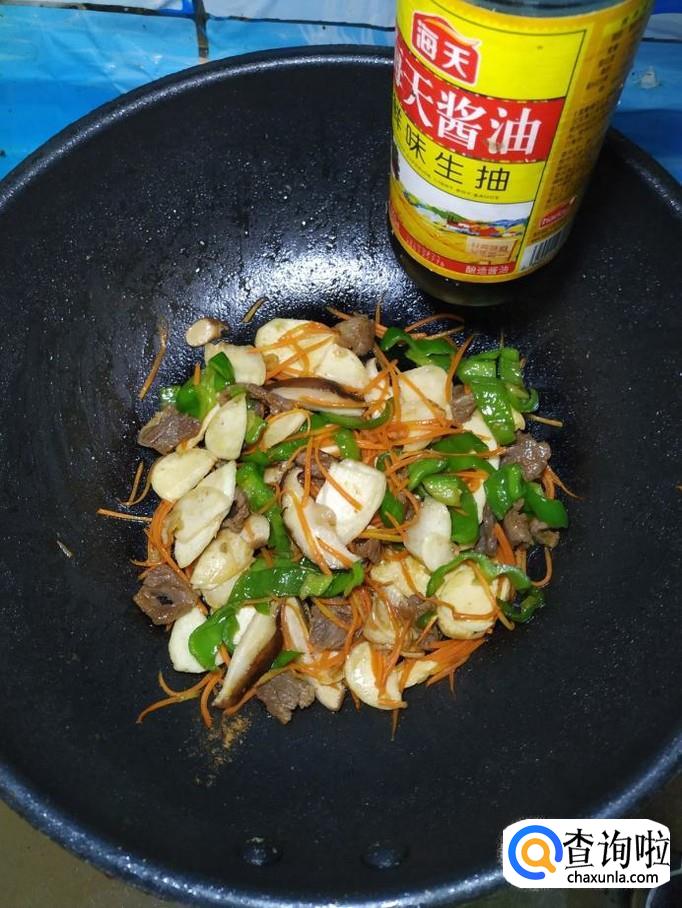 加少许生抽,增亮色泽。然后加少许清水,防止粘锅。