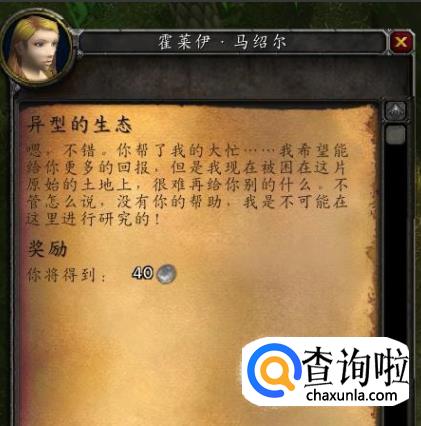 任务完成后,回到安戈洛环形山地图的马绍尔营地,找NPC霍莱伊·马绍尔提交任务即可完成。任务奖励40银币以及若干人物经验。
