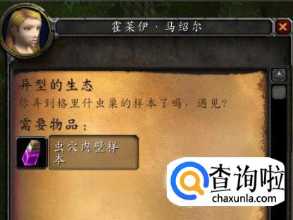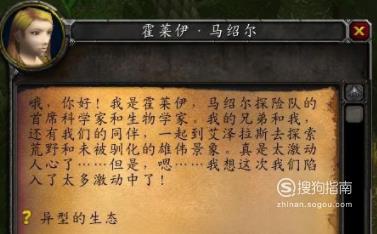 魔兽世界地图安格洛环形山的马绍尔营地中有个[异形的生态]的任务,因为安戈洛环形山地图很大,而目任务说明指向不明,目前的插件又不明确显示任务位置,所以这个任务比较难做。
