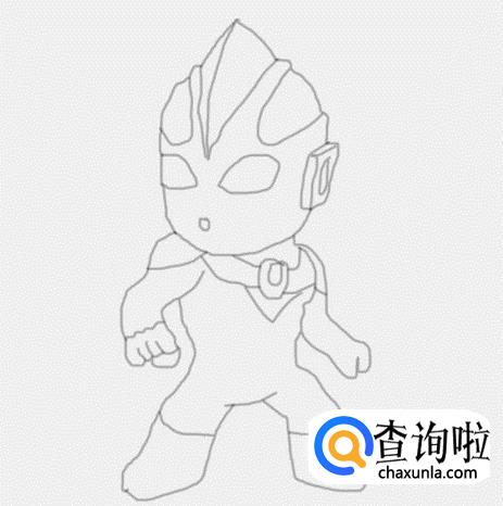最后我们再在奥特曼的身体上画出其他的细节结构线,这样简笔画奥特曼就画好了,如图所示: