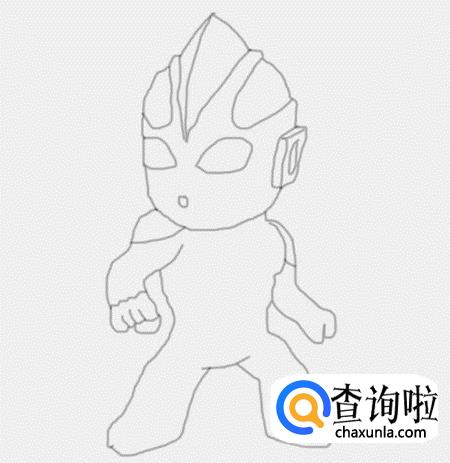 在两只胳膊的基础上我们再画出奥特曼的身体,然后在身体下面画出奥特曼的两条腿,如图所示: