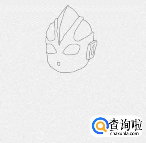 在头部轮廓上画出奥特曼的头部结构线,然后再画出奥特曼的两只眼睛,在眼睛的下面画出奥特曼的嘴巴,如图所示: