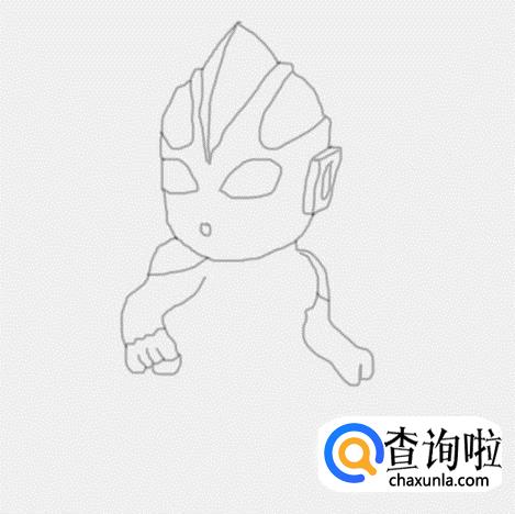 在奥特曼的头部下面画出奥特曼的两只胳膊及手部,如图所示: