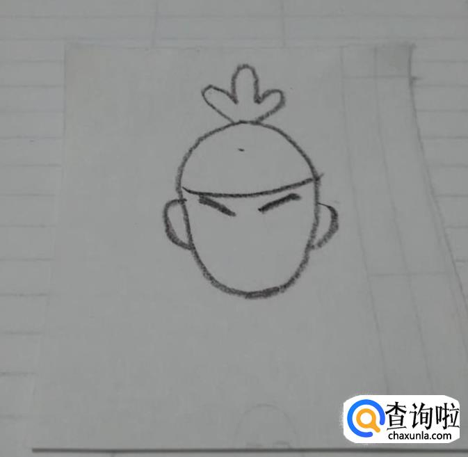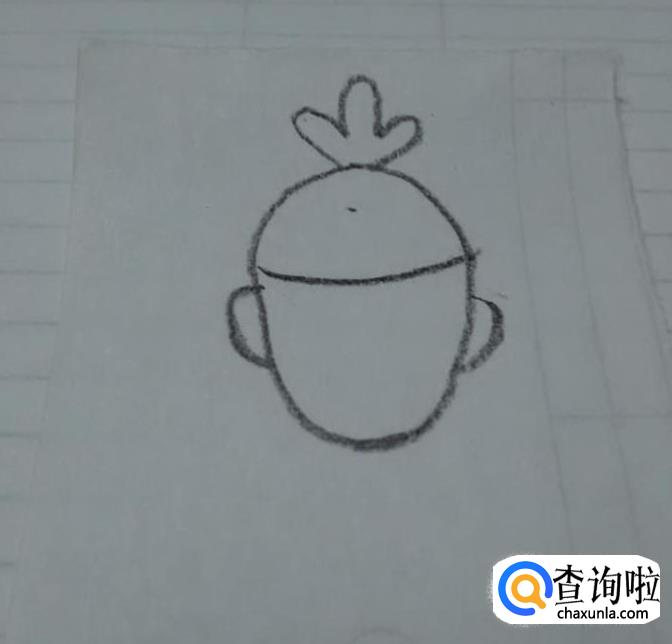 在头的两侧各画一个半圆形,表示他的耳朵。