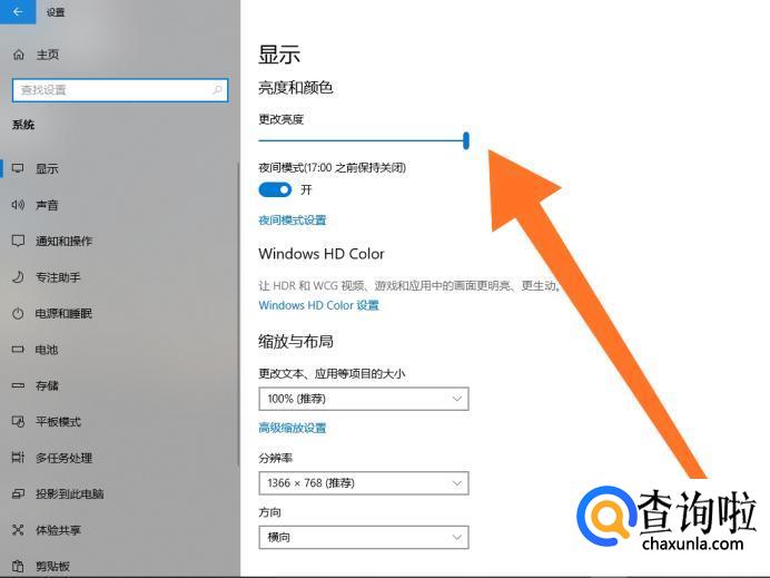 最后在“显示”设置里拖拽更改亮度的进度条即可调整电脑屏幕亮度。