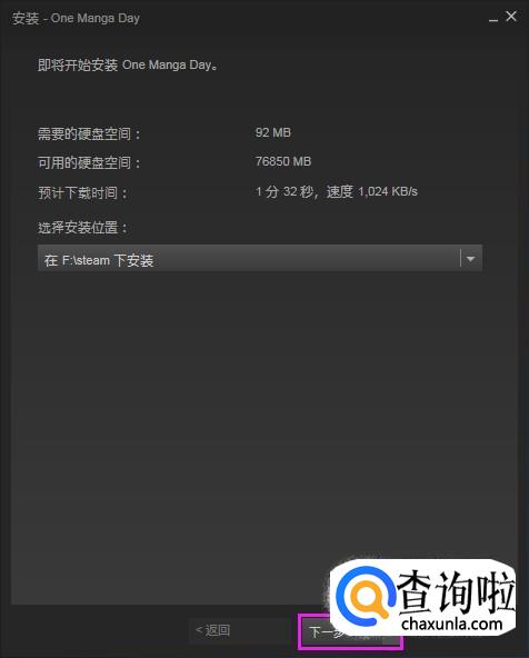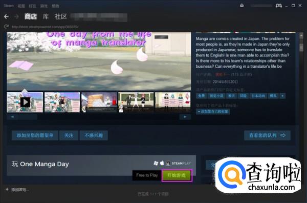 选中需要下载的游戏,下载游戏教程:如果游戏是免费(Free to Play)会查看到“开始游戏”,点击“开始游戏”,出现下载游戏框中有下载游戏的信息,点击“下一步”。