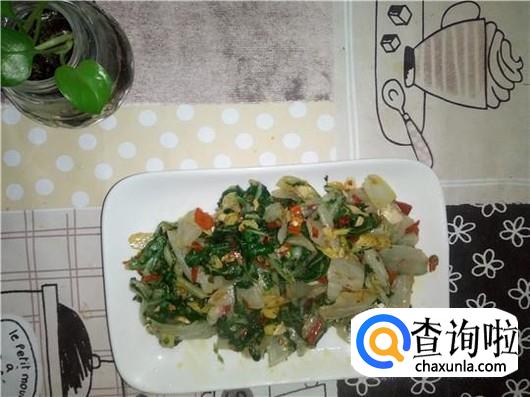炒个三分钟就可以盛出了,别看牛皮菜卖相不好,酸酸辣辣的可好吃了。