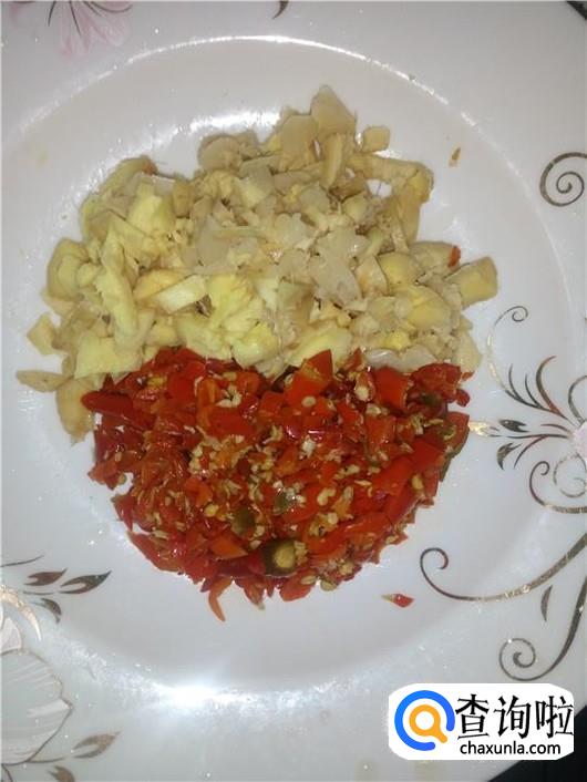 准备好泡姜泡椒,切碎。