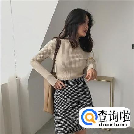 这一条有着很小黑白格的半身裙搭配一件浅驼色的毛衣,分分钟彰显出女性的好身材,只是这种搭配不适合有肉肉的女生,会让你的肉肉无处可藏哦。