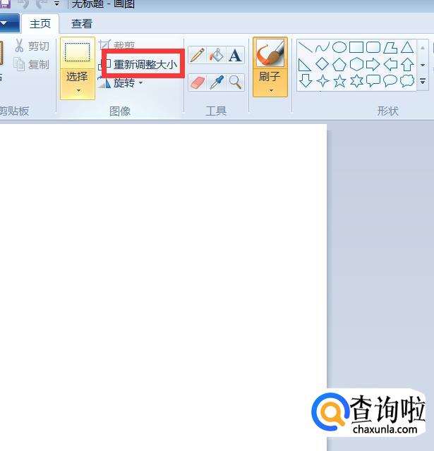然后打开画图软件,我们新建一个文件,然后点击“重新调整大小”。